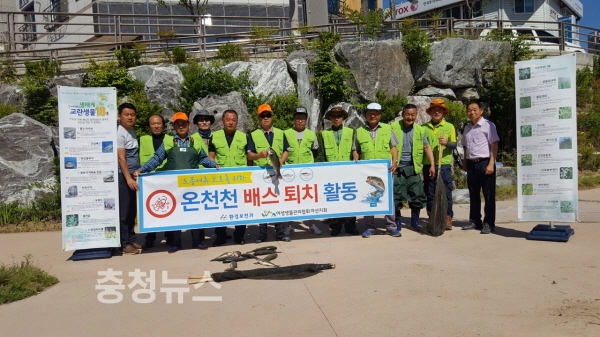 이에 지난 26일 야생생물관리협회 아산시지회(회장 최학선) 회원 20명이 온양천에서 왕성한 식욕과 번식력으로 토종어종을 먹어치우며 자연생태계의 생물다양성을 헤치는 베스, 블루길 등 외래어종 퇴치활동을 실시해 20여 마리를 퇴치했다.