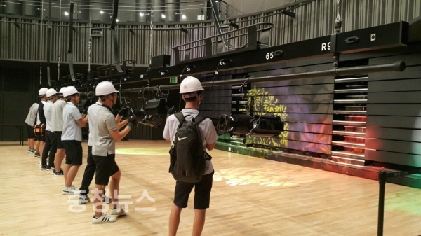 이날 행사는 대전탄방중학교 3학년 14반 학생 30명이 참여해 무대기계와 조명, 음향 등 공연장 무대와 관련한 다양한 직업군을 생생하게 체험하면서 펼쳐졌다.