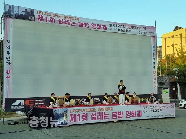 동춘당 근린공원 야외광장에서 지역주민 560여명이 참석한 가운데 영화 상영