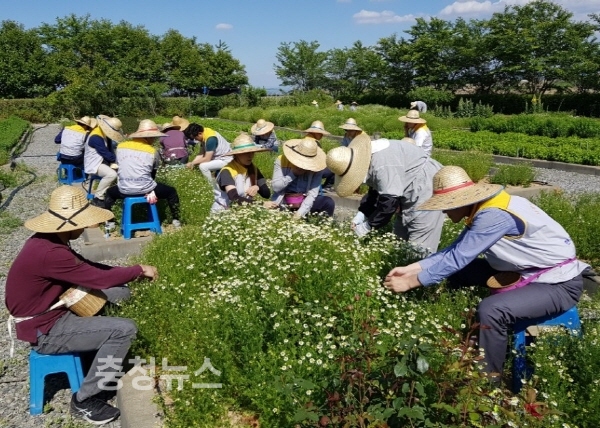 재가노인복지시설 방문 허브농장 허브꽃 채취 구슬땀