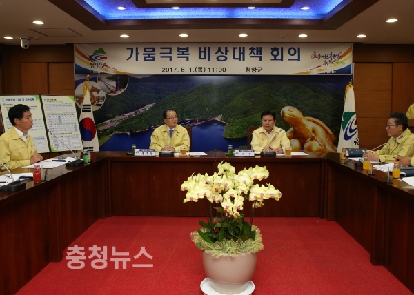 충남 청양군(군수 이석화)은 최근 유례없는 극심한 가뭄으로 논농사는 물론 밭농사 등 전반적으로 어려움을 겪고 있으며 생활용수를 공급하는 상수원인 보령댐 저수율이 6월 1일 기준 9.9%까지 낮아져 가뭄단계가 ‘경계’에서 ‘심각단계’로 조정됨에 따라 긴급가뭄극복을 위한 종합비상대책회의를 가졌다.
