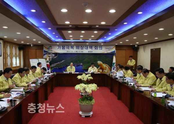 1일  군청 상황실에서 열린 이번 회의는 관련 실·과장, 읍·면장, 농어촌공사청양지사장이 등 20여명이 참석해 분야별 가뭄대책 및 추진상황에 대한 조치방안 등을 논의하고 가뭄이 해결될 때 까지 종합가뭄대책상황실을 지속적으로 운영할 계획이다.