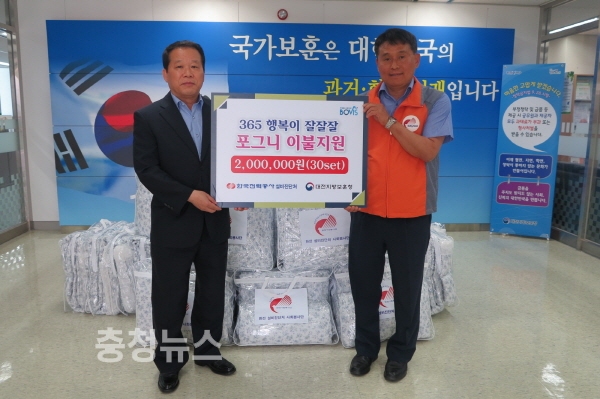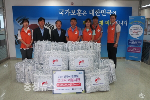 한국전력공사 설비진단처(처장 박상서)는 1일 대전지방보훈청 3층 로비에서 재가복지서비스를 받는 국가유공를 위해 이불세트(30set, 200만원 상당)를 대전지방보훈청(청장 강윤진)에 전달하였다.