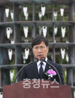 추념식은 국기에 대한 경례와 애국가 제창, 묵념에 이어 헌화 및 분향, 샌드아트 시연, 안 지사 추념사, 추모사, 헌시 낭송, 현충의 노래 제창 등의 순으로 진행됐다.