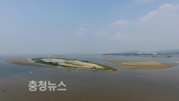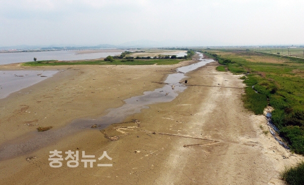 충청도 서부지역 가뭄이 계속 이어지고 있는 가운데 당진시 신평면과 우강면 일원에 농업용수를 공급하는 삽교호가 이달 2일 기준 27.8%의 저수율을 보이며 삽교호 무명섬 일원이 바닥을 드러냈다.