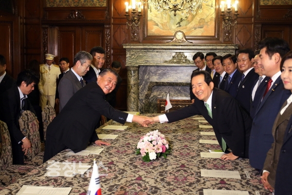 정 의장은 먼저 오오시마 중의원 의장과 만나 “새로운 한일관계를 만드는데 양국 의회의 역할이 중요하다" 라면서 "양국의 정치지도자 뿐 아니라 각 분야의 책임있는 분들이 함께 지혜를 모아 미래지향적이고 성숙한 동반자관계를 만들어가길 바란다" 고 말했다.