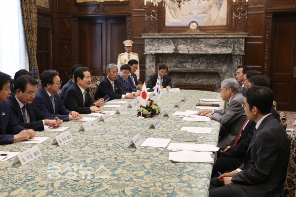 정 의장은 이어 “한일 양국간 어려운 문제 있을 때에 의회대화채널이 가동되어 왔고, 지금이 더욱 필요한 시점”이라고 전한 뒤 “재일동포들의 안전한 생업환경 조성을 위한 ‘헤이트스피치 대책법’ 과 ‘한일어업협상’의 조속한 타결 등에 대해서도 일본 의회의 적극적인 지원을 당부한다”고 말했다.