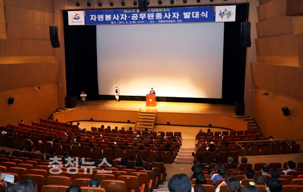 충남 계룡시(시장 최홍묵)는 지난 8일 계룡문화예술의 전당에서 오는 15일부터 18일까지 계룡시에서 개최하는 제69회 충청남도민체육대회의 성공 개최를 위해 자원봉사자 발대식을 가졌다.