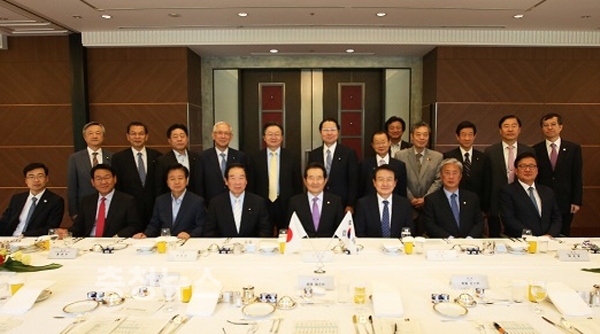 정 의장은 지난 8일 만난 아베 신조(安倍 晋三) 총리와 오오시마 타다모리(大島 理森) 중의원 의장, 다테 츄이치(伊達 忠一) 참의원 의장 등 일본의 정치지도자들과 한일 양국간 미래지향적이고 성숙한 협력동반자 관계 필요성에 공감했음을 언급하며, 앞으로도 일한의원연맹이 한일간 중추적인 대화소통채널이 되어주길 당부했다.