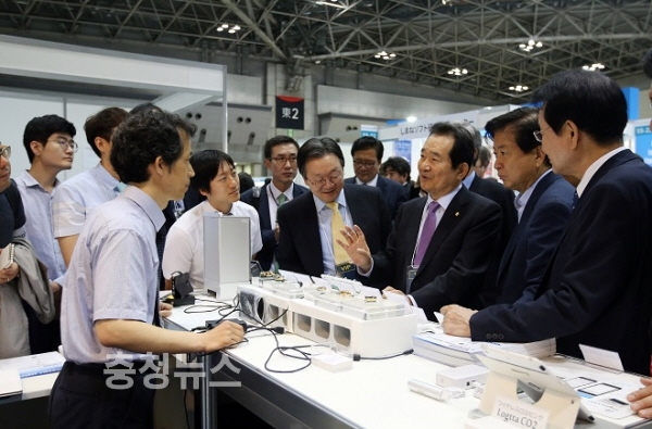 정세균 의장이 스마트 센싱을 시찰하고 있다.
