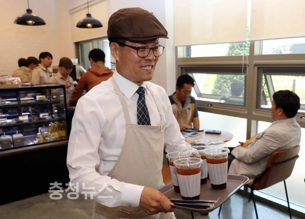 김덕배 홍성군의회 의장은 지난 8일 홍성읍 행정복지센터에 위치한 중증장애인 채용 카페에서 1일 명예점장으로 활동했다.