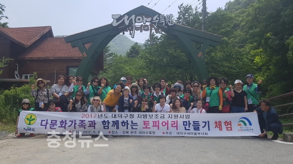 대덕구새마을부녀회(회장 양영자)는 지난 8일 다문화가족 30명과 함께 전주한옥마을 및 전북 완주 대아수목원으로 ‘다문화가족과 함께하는 토피어리 만들기 체험’ 행사를 다녀왔다.