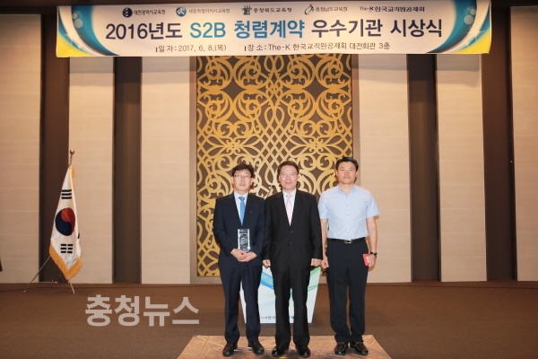 이번 시상은 한국교직원공제회에서 2016년도 한 해 동안 S2B(학교장터)를 통해 청렴계약 증대 실적이 우수한 기관을 대상으로 선정했다.