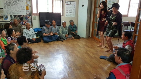 이날은 송악읍주민자치위원회가 마련한 ‘찾아가는 행복 마차’가 열리는 날. 마을회관에 모인 주민들은 점심을 함께 먹으며 마을 현안에 대해 토론도하고, 문화공연을 즐겼다.