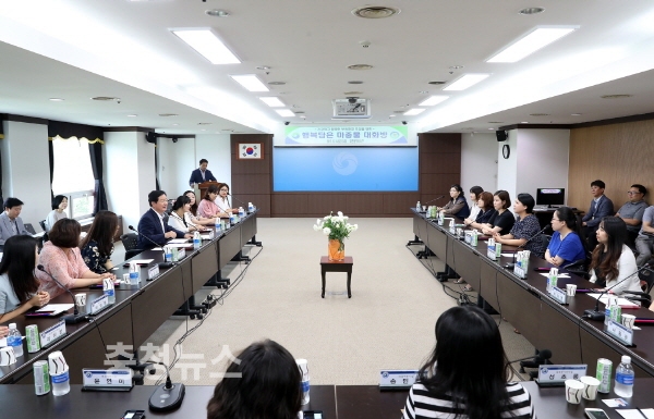 대전 서구(구청장 장종태)는 14일 구청 대회의실에서 지역 내 어린이집 보육교사 21명이 참석한 가운데, 행복 담은 ‘마중물 대화방’ 행사를 가졌다.