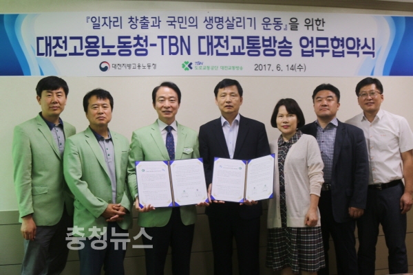 도로교통공단 TBN대전교통방송(본부장 조신형)이 14일 대전지방고용노동청에서 일자리 창출 및 국민 생명살리기 운동을 위한 업무협약을 체결했다.