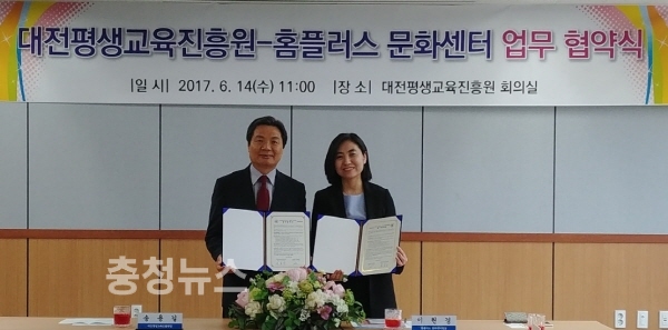 대전평생교육진흥원(원장 송용길)은 14일 오전 11시 진흥원 회의실에서 홈플러스 문화센터와 업무 협약을 체결했다.