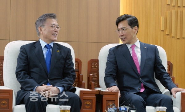 한편 문 대통령은 이 자리에서 “지난 대선 때 수도권과 지방이 상생할 수 있는 강력한 지방분권 공화국을 만들겠다고 약속했다. 그 방안 중의 하나로 자치분권 국무회의라고 불리는 제2국무회의 신설을 약속드렸다”며 “원래 안희정 지사의 공약이었는데 그 공약을 이어받은 것”이라고 밝혀 눈길을 끌기도 했다.