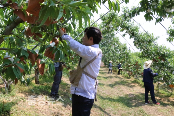 연서면 농가를 찾아 복숭아 봉지 씌우기 농촌일손돕기에 구슬땀