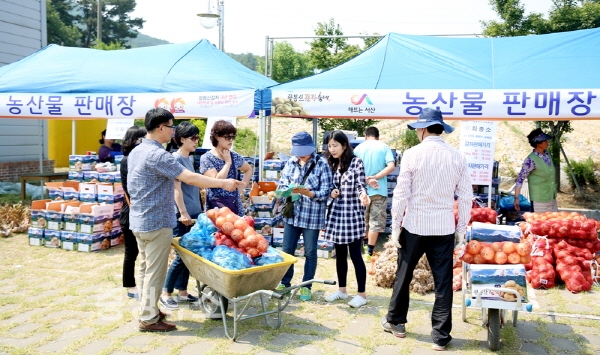 팔봉산 감자를 비롯해 양파, 마늘 등 지역 농민들이 준비한 농특산물 관광객들로부터 큰 인기
