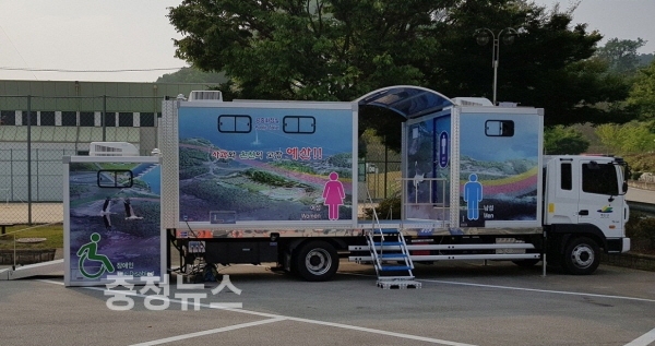 19일 군에 따르면 차량형 이동식 공중화장실은 그동안 군이 각종 행사 시 공중화장실을 임대해 사용했지만 상수도 및 전기 시설이 없는 경우 여성 및 장애인 등이 큰 불편을 겪어 왔기 때문에 이러한 불편을 줄이고 이용자들에게 편의를 제공하고자 마련됐다.