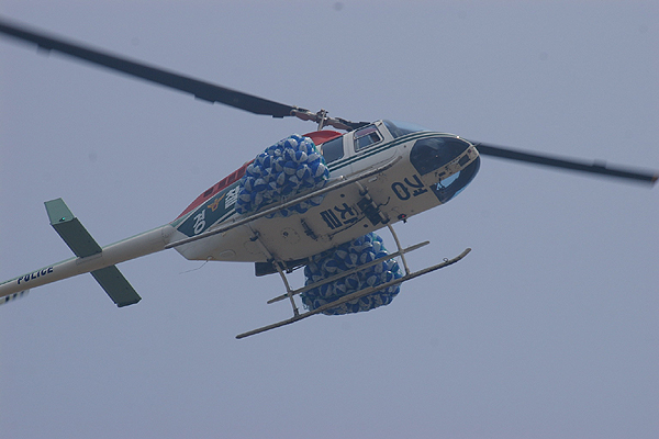 경찰헬기를 이용 물놀이 사고예방 공중 홍보방송을 실시