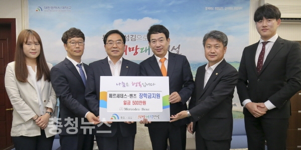 대전 대덕구에 위치한 메르세데스-벤츠 대전전시장(지점장 강인창)은 20일 구민의 사랑방에서 저소득 아동을 위한 장학금 500만 원을 대덕구(구청장 박수범)에 기탁했다.