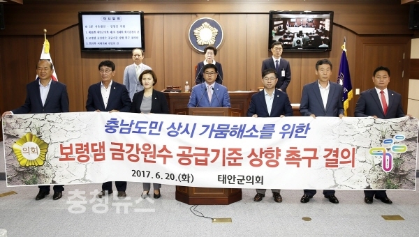 이번 결의안은 보령 댐으로부터 용수를 공급받는 태안군을 비롯한 8개 시·군민들이 극심한 가뭄에도 안정적인 물 공급을 위한 대책 중 하나로써 지난 5월 31일 충청남도 시·군 의장협의회 정례회에서 결의문을 채택하기로 논의되었던 내용이다.