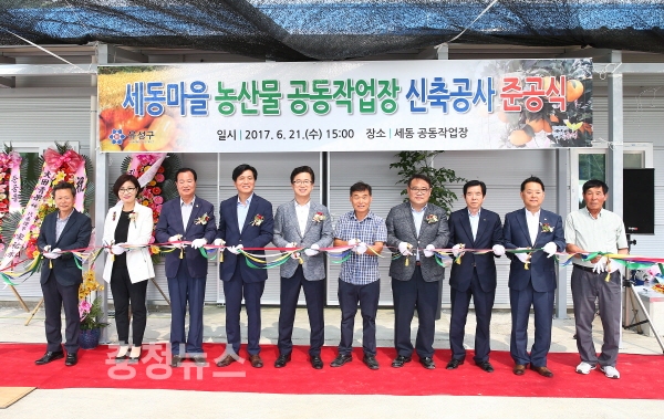 대전 유성구(구청장 허태정)는 21일 오후 세동 92번지에 신축한 “세동마을 농산물 공동작업장”의 준공식을 개최했다고 밝혔다.