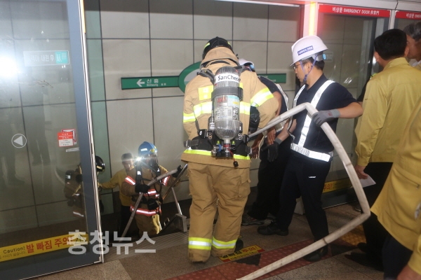 대동역‘지하철 화재․테러 대비 충무훈련’은 KT충남본부, 동부경찰서, 505여단 등 민관군 9개 기관과 학생, 녹색어머니회, 시민안전지킴이 등 일반시민을 포함하여 250여명이 참여했다.
