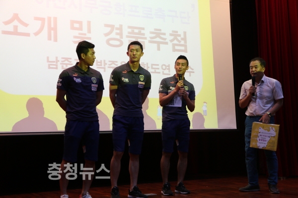 이 날 행사에는 황도연과 박주원, 그리고 아산시 배방읍이 거주지인 남준재가 구단 알리기에 나섰다.