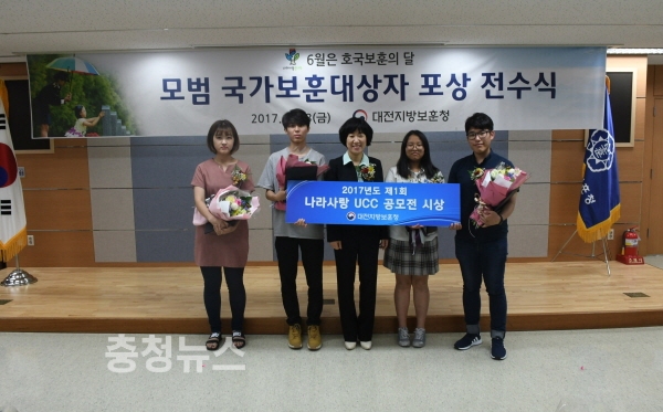 또한 호국보훈의 달을 맞아 호국영령 및 국가유공자의 나라사랑정신을 함양하고자 실시한 ‘제1회 대전지방보훈청 나라사랑 UCC 공모전 시상식‘에 5명이 수상 하였다.