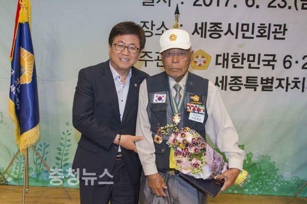최 교육감은 "나라를 위해 싸우신 한국전쟁 참전 용사들이 이제는 90세 전후의 어르신이 되셨다면서 감사하는 마음으로 참전용사 한 분에게 상을 드렸다"고 밝혔다.