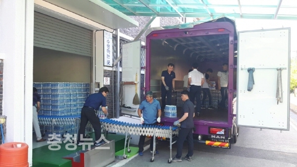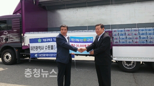 대전시(시장 권선택)는 최근 지속적인 가뭄으로 인한 물 부족 사태를 겪고 있는 충남 보령 및 공주시에 지난 23일, 26일 양일간에 수돗물 병입수 페트병(350ml)으로 4만 병을 지원했다.