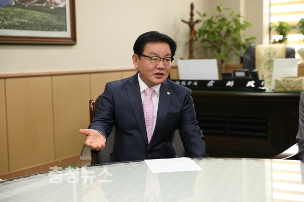 최홍묵 계룡시장 집무실 인터뷰 모습