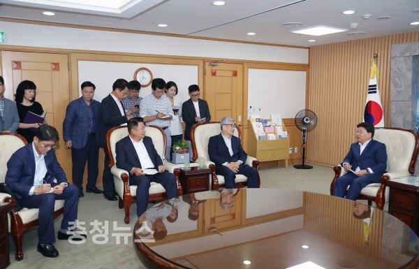 이날 면담을 중재한 이상민 의원은 "지역사업을 위해 권 시장과 송 부회장의 결단이 필요한 때”라며 “오늘이 마지막이 아니라 앞으로도 두 분이 대화를 이어나갔으면 좋겠다”며 사업 재추진을 당부했다.
