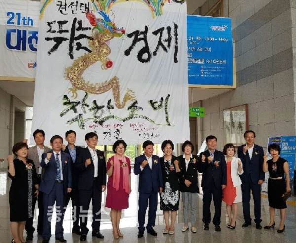 이날 기념행사에서는 소비자권익증진 활동에 앞장선 표창 유공자에 대한 대전시장 표창(9명)과 대전식품의약품안전청장 표창(8명)을 시작으로 권선택 시장의 기념사와 김경훈 시의회의장 등 내빈 축사에 이어 선화도의 대가 자봉화백의 '경제활성화 기원 퍼포먼스' 순으로 진행됐다.