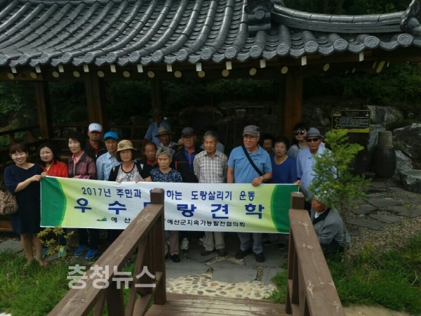 2017년부터 도랑살리기 운동에 참여하고 있는 예산군 봉산면 화전리 주민과 환경단체 25여명이 지난 27일 아산시의 실개천살리기운동 대표적 모범마을인 배방읍 공수1리 원공술(이장 김동빈)에 방문했다.