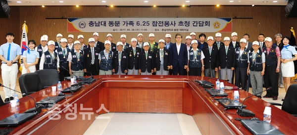충남대(총장 오덕성)는 28일 오전 11시 대학본부별관 대회의실에서 ‘충남대 동문가족 6. 25 참전 용사 초청간담회’를 개최했다.
