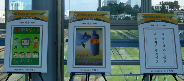 충청체신청과 한국정보보호진흥원은 지난 6월 학생들의 정보보호에 대한 관심을 높이고 그 실천을 권장하기 위하여 전국의 초・중・고등학생을 대상으로 공모전을 개최하였으며 그 심사결과 채택된 우수작을 이번 전시회를 통하여 일반 시민에게 공개하고 있다.