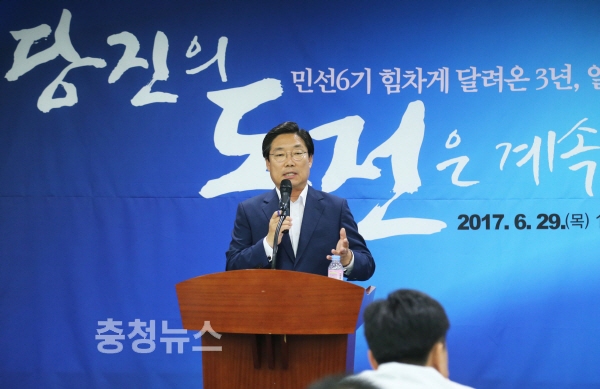 김홍장 당진시장이 29일 민선6기 3주기 기자회견에서 “시대가 요구하고 그 역할을 내가 할 수 있는 일이라고 한다면 내년 도지사 출마를 하고자 한다”고 밝혔다.