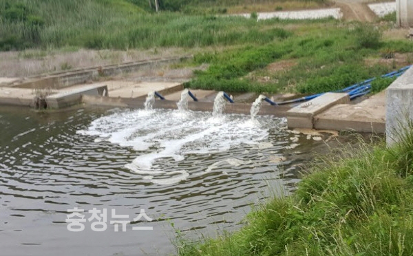 치성천 하류에서 1일 5천톤의 농업용수 천정저수지로 양수 / 충청뉴스 최형순 기자