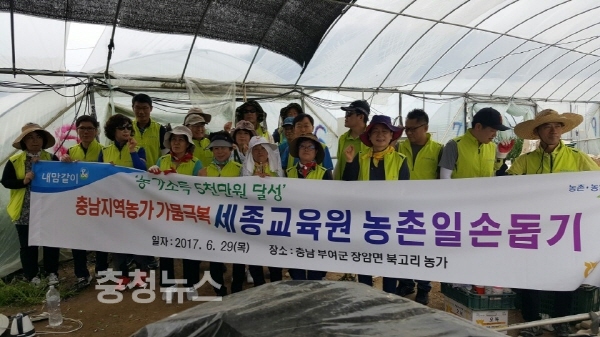 농협보험 세종교육원 (원장 우성철) 교직원 25명은 극심한 가뭄과 일손부족으로 어려움을 겪고 있는 충남지역 농가에 힘을 보태기 위해 지난달 29일 부여군 장암면 북고리 농가에서 일손돕기를 실시하였다.