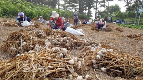 가의도 마늘 7,500접 수확 완료, 농가에 우량 종구 보급