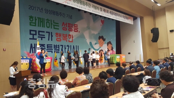 이날 행사는 이춘희 시장과 최교진 세종시 교육감, 성정숙 여성단체협의회장을 비롯, 양성평등유공 표창 수상자 등 200여명이 참석한 가운데 진행됐다.