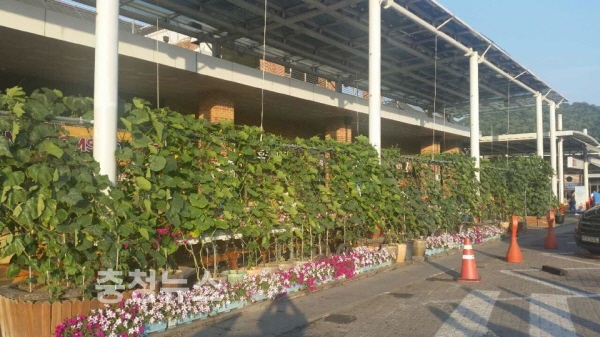 특히 휴게소 통로에는 아이들이 정서적 교육에 필요한 전통적인 식물인 조롱박, 넝쿨, 호박,장미 꽃 터널을 설치해 TV방송에 소개되는 등 운전자들의 여행의 즐거움을 선사하고 있다.