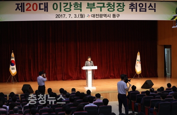 대전 동구(구청장 한현택)는 3일 구청 공연장에서 직원, 주민 등 500여 명이 참석한 가운데 제20대 이강혁 부구청장 취임식을 가졌다.