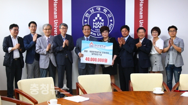 한남대 경영.국방전략대학원 총동문회(회장 하란희)는 3일 대학발전기금 총 4천만 원을 이덕훈 총장에게 전달했다.