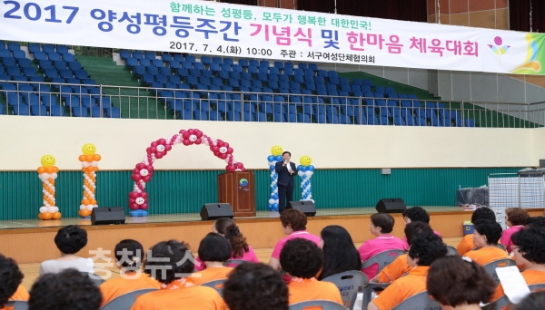 대전 서구(구청장 장종태)는 2017년 양성평등주간을 맞아 ‘함께하는 성평등, 모두가 행복한 대한민국!’라는 주제로 4일 도솔다목적체육관에서 기념행사를 개최했고 밝혔다.