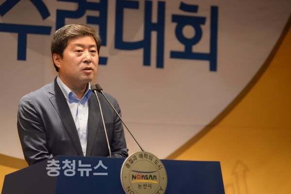 생활개선논산연합회 수련대회에 참석 인사말을 하고 있는 황명선 논산 시장
